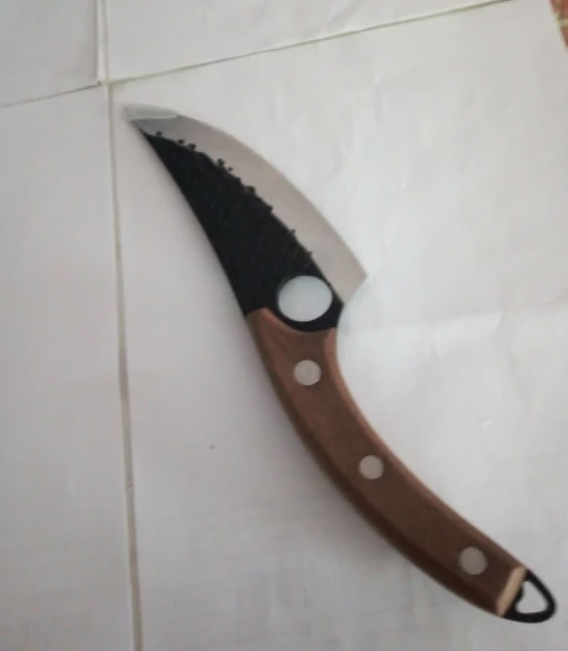 Knife is as advertised. Sharp and ready to use. The hole in the bottom of the blade results in excellent balance when using and I am convinced it will retain its sharpness for a long while. I will be ordering a sharpening stone so that if I ever need it I will have it.
